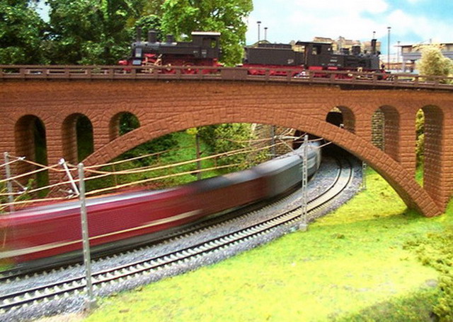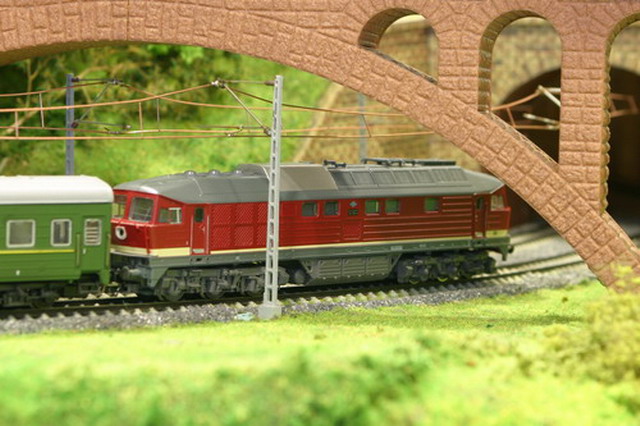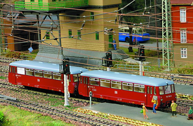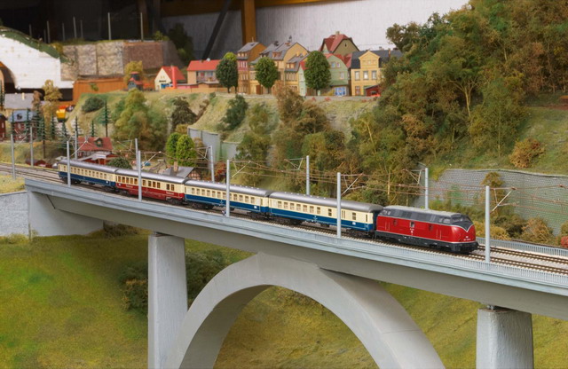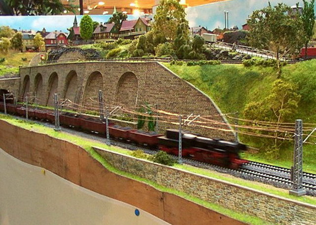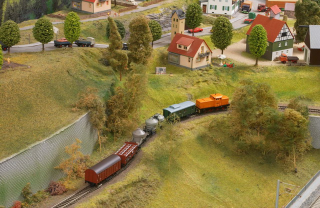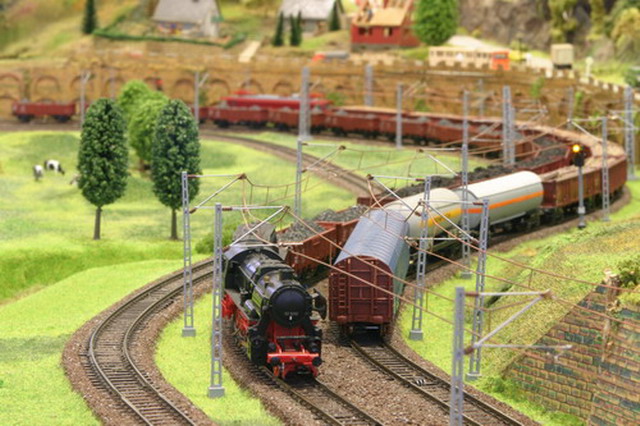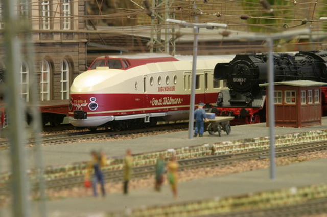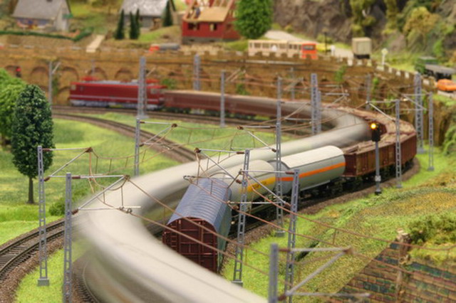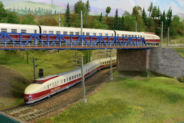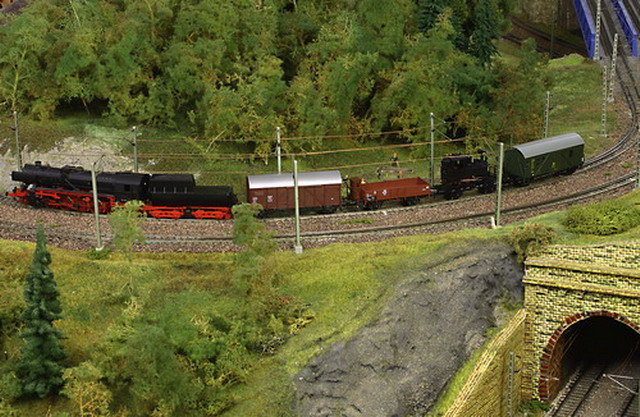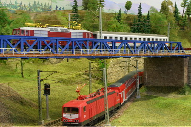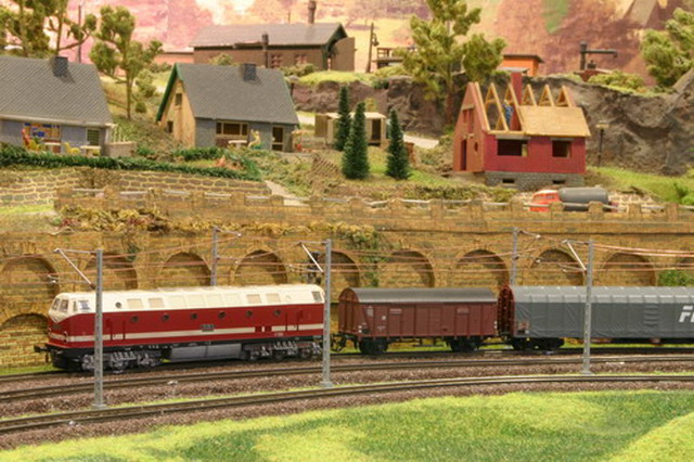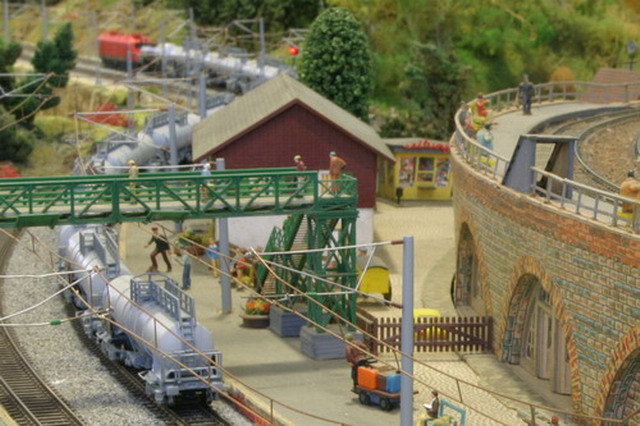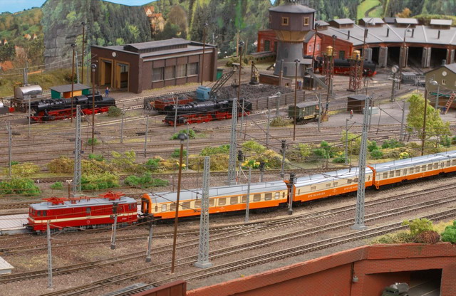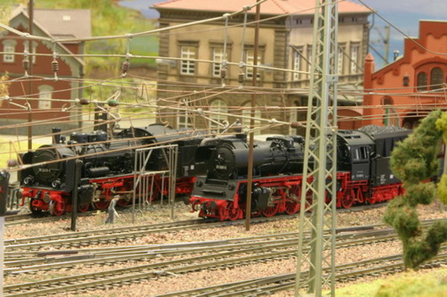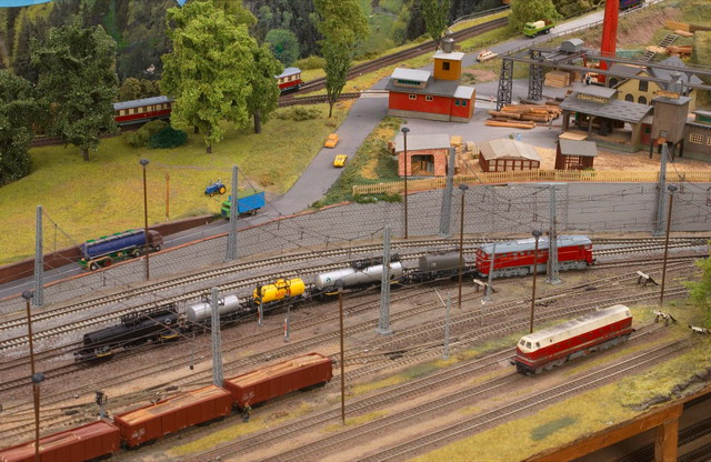 Als Partner der Firma Tillig Modellbahnen und Beckmann TT, sind wir stolz, Neuheiten der „Modellbahn“ präsentieren zu können. Durch eine selbst entwickelte Steuerung für das Blocksystem können bis zu 18 Züge auf der 2-gleisigen Hauptbahn verkehren. Mit dem 8-gleisigen vollautomatischen Schattenbahnhof, der in das Blocksystem integriert ist, wird eine weitere Abwechslung in der Zugreihenfolge geschaffen und gönnt den Motoren der Lokomotiven eine notwendige Pause nach der langen Schleife. Die Anlage besitzt neben dem Hauptbahnhof, ein Bahnbetriebswerk, einen Container- und Rangierbahnhof. Vorbildgerechtes Nutzen aller Bahnhofsbereiche ist jeder Zeit möglich. Auf der bis zu ca. 240 m Gleislänge und etwa 150 Weichen befindlichen Gemeinschaftsanlage ist daher gutes „Rangieren“ und „Umsetzen“ von Wagen und Lokomotiven möglich. Zwei ins Gebirge abzweigende Nebenbahnen vervollständigen das Gesamtbild der TT-Gemeinschaftsanlage.