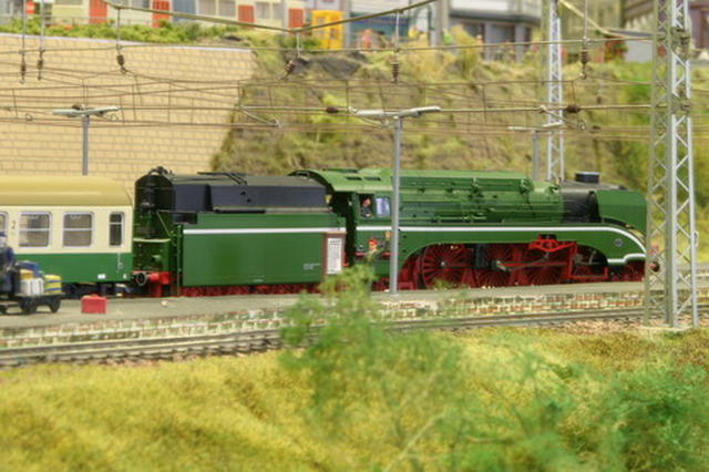 Auf der 2-gleisigen vollautomatischen Hauptstrecke, die ca. 140 m Gleislänge beträgt, sind eine Vielzahl von Fahrzeugen und Eigenbauten zu sehen. Der Wagenpark geht in die Hunderte, die Auswahl der Züge ist vom ICE , der BR 52 Kohlenstaub, vor dem Kohlezug, bis zur BR 132 vor dem Schnellzug sehr zahlreich.